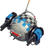 Essentially just a reskinned Ball Bot with slower move speed; charges towards players and unleashes radial damage pulses at a fast rate